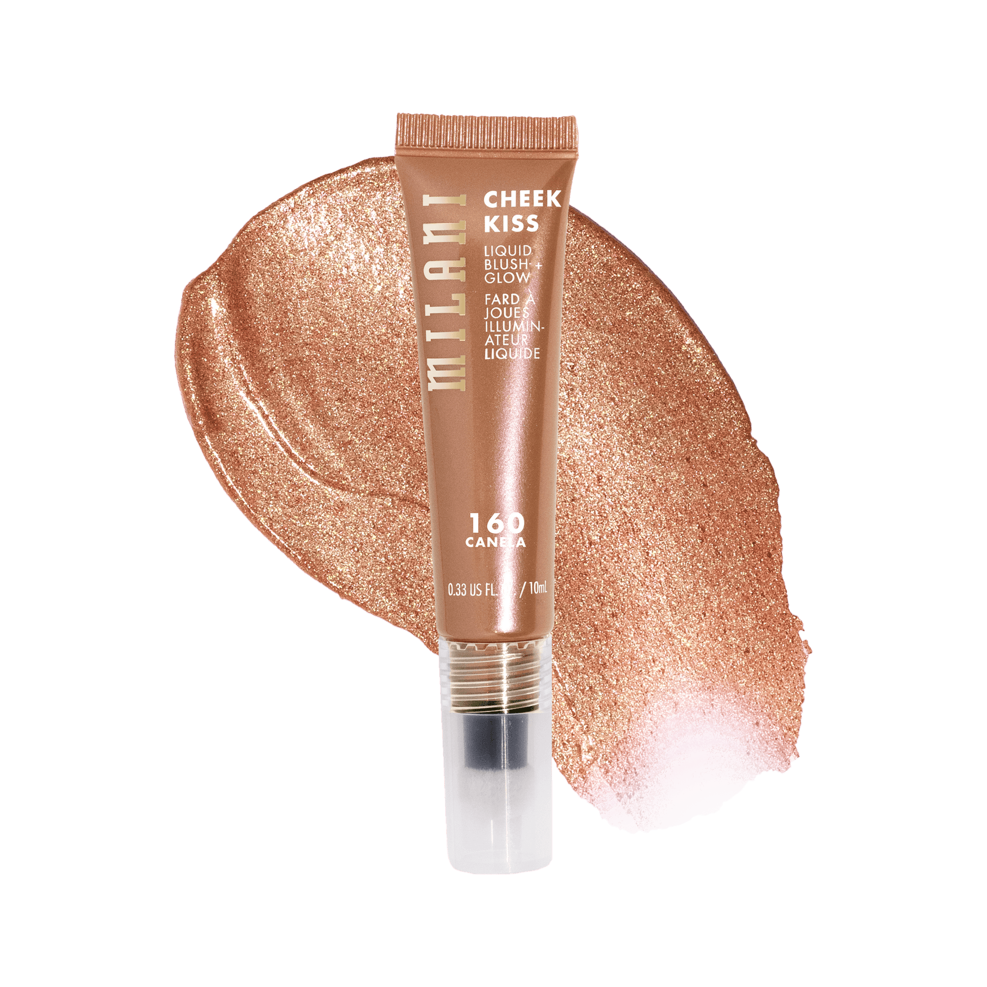 Liquid blush meets highlighter in the perfect kiss of color. Create a soft-focus, golden hour glow any time with Milani Cheek Kiss Blush + Glow, a hybrid highlighting blush infused with finely milled pearl pigments. The silky, lightweight formula is enhanced with skin-nourishing Glycerin & Vitamin E, as well Milani Cheek Kiss’ signature antioxidant blend of Watermelon, Pomegranate and Rose extracts. Designed to build easily, blend seamlessly & dry down evenly, Cheek Kiss Blush + Glow is perfect as a one and done, and also great for blush layering with 6 universally flattering shades.